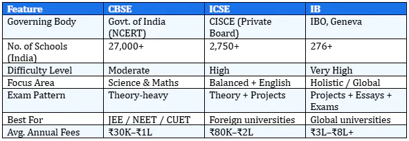 CBSE vs ICSE vs IB: Side-by-Side Comparison